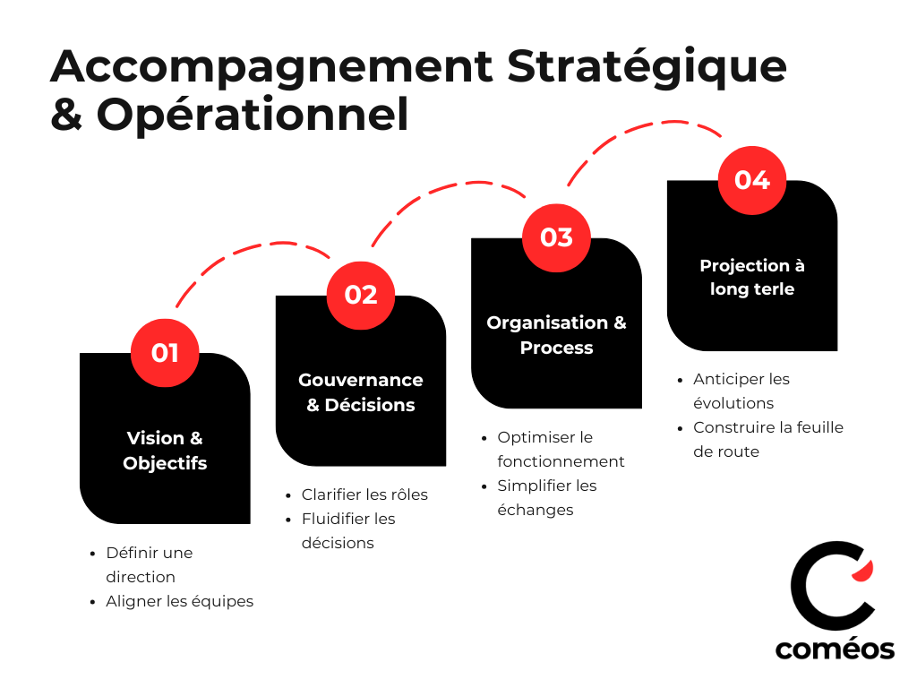 Dans un environnement en constante évolution, les entreprises ont besoin de clarté, de vision et de cohérence pour avancer avec confiance. Chez Coméos, nous aidons les dirigeants et leurs équipes à prendre de la hauteur, à tracer une feuille de route ambitieuse et à bâtir une organisation solide, agile et tournée vers l’avenir.