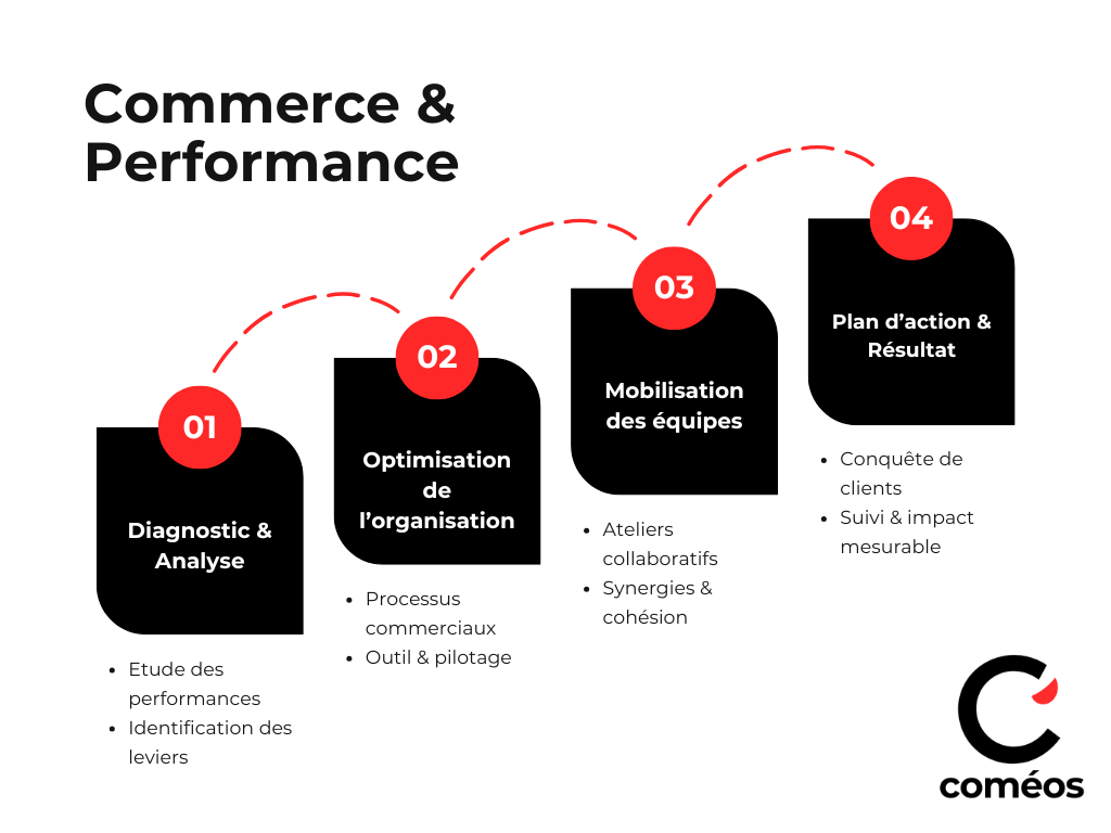 Votre chiffre d’affaires stagne ? Vos marges s’amenuisent ? Ou vous sentez que vos équipes ont besoin d’un nouveau souffle ? Chez Coméos, nous aidons les entreprises à retrouver leur dynamique commerciale, à se réinventer et à performer durablement